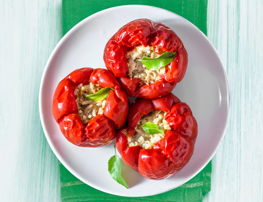 - Divide the vegetable mixture equally among the pepper halves.